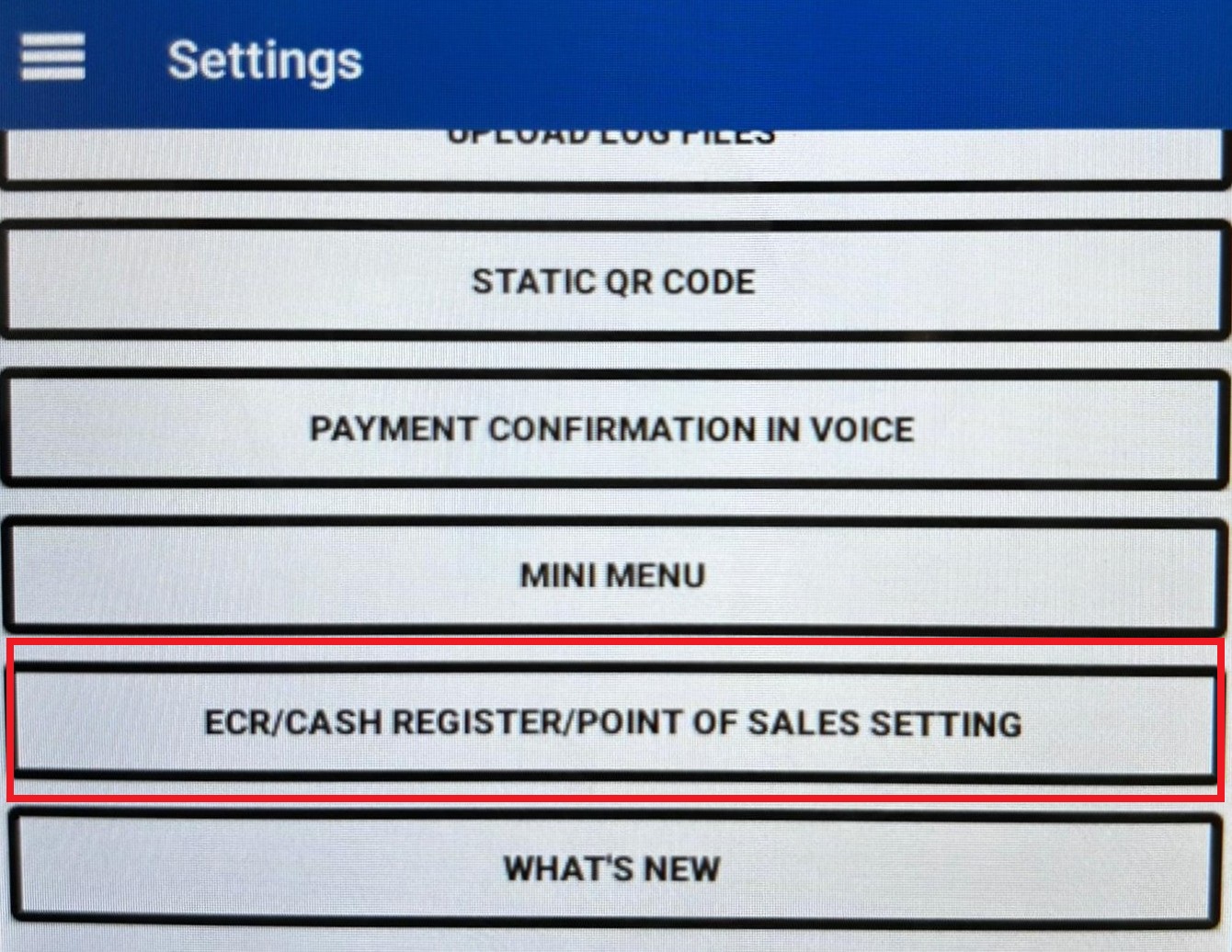 - Go to Settings > ECR/Cash Register/Point of Sales Setting.