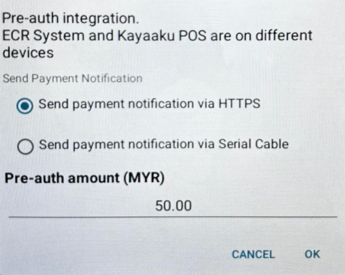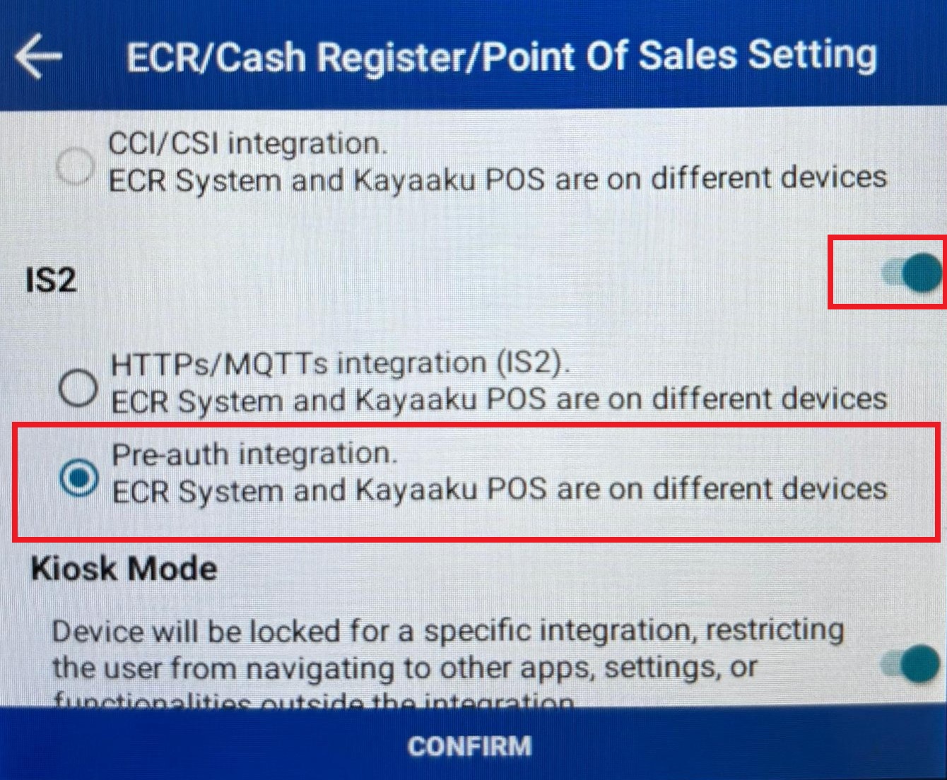 Merchant needs to configure on the Kayaaku POS on the integration mode settings.